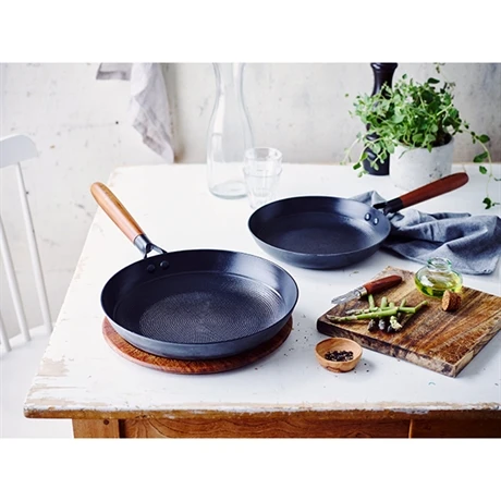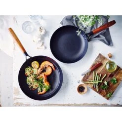 EquipĂ©e dâun manche en bois dâacacia, la poĂȘle a de bonnes propriĂ©tĂ©s antibactĂ©riennes.