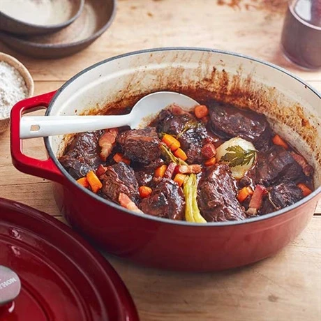 Dans votre cocotte Mathon ovale 29 cm rouge émaillée, vous cuisinez des recettes savoureuses et fondantes sur tous les feux ou au four. Elégante, elle servira aisément de plat de présentation à apporter à table pour régaler vos convives.