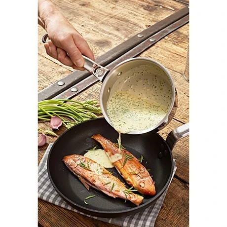 Avec cette PoĂȘle de 24 cm de diamĂštre cuisinez sans colorer vos poissons, lĂ©gumes, cĂ©rĂ©alesâŠIdĂ©ale pour rĂ©chauffer des plats cuisinĂ©s ou prĂ©parer des sauces, tout en conservant le goĂ»t et la couleur des ingrĂ©dients. Avec son corps en aluminium forgĂ©e, qui garantie une montĂ©e progressive et uniforme de la tempĂ©rature. Son revĂȘtement en noire mat est trĂšs rĂ©sistant. Cuisinez plus sainement en utilisant moins de matiĂšres grasses. Avec son revĂȘtement renforcĂ© sur base dure, elle permet de conserver plus longtemps ses propriĂ©tĂ©s antiadhĂ©sives (50% de durĂ©e de vie en plus). En aluminium forgĂ© et avec sa queue rivetĂ©e en inox, cette poĂȘle saura rĂ©sister aux multiples utilisations.Â