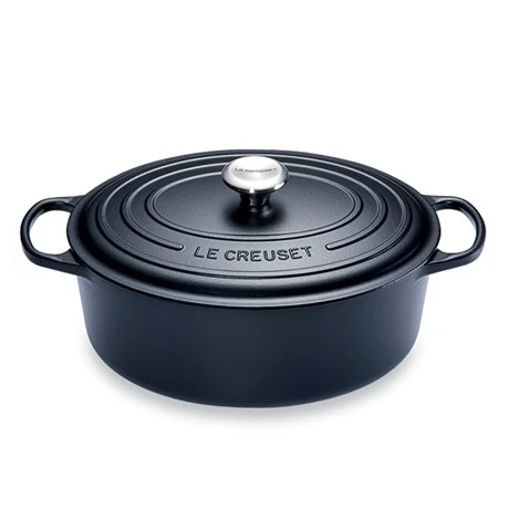 Cette Cocotte fonte ovale 31 cm noir Le Creuset est conçue en fonte émaillée pour une cuisson traditionnelle. Idéale pour cuisiner pour de nombreux convives, elle permet aussi de faire mijoter les viandes.