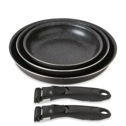 Deux manches amovibles sont fournis avec le set de 3 poêles.